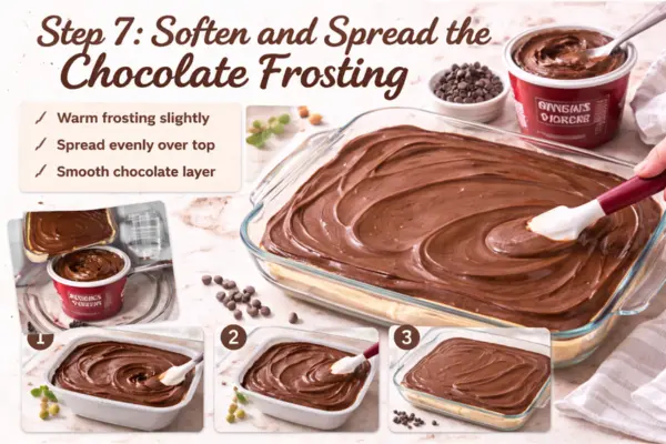 Instead of ready-made frosting, use a simple chocolate ganache if you want a smoother and more elegant top layer. Some recipe versions highlight ganache as a great option for a softer, silkier chocolate finish.